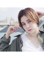 センターパート分けのベーシックなマッシュショートボブ。質感は柔らかく、頭の形や骨格を綺麗に見せれるようにこだわりながらカットしています。長めのバングをセンターパートで分かることで、大人な落ち着いた印象に。明るめのベージュカラーで軽やかに!