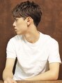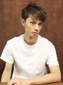 耳周り、襟足をスッキリ短くしたツーブロックショートスタイル。前髪は横に流して眉くらいで、トップは高さが出る様にレイヤーを入れ立体感を出しています。カラーは赤味をしっかり抑えたアッシュグレーにして外国人の様な柔らかい雰囲気にしています。