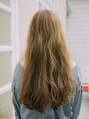ロングの巻き髪でも少しクールめな印象になるように、流しめの前髪にゆるいウェーブを作りました。バックは長めのスーパーロング。重めのカットで毛先に重量感と全体のシルエットをIラインよりに!!顔まわりのレイヤー部分で動きをつけて◎