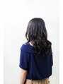 重めになりがちな黒髪も細かく毛束を取ってふんわり大きめウェーブで派手になりすぎないナチュラルカワイイに。
