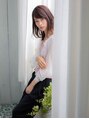 前髪など全体的に重ためな印象なのですが、前髪を片方に流してあげたり、顔まわりの髪の毛を外に流れるようにカットをしたりなどして肌見せの範囲を調節して重たすぎない印象を作っています!!