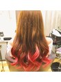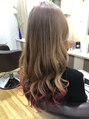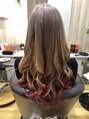 グラデーションからの毛先ピンクで可愛さup。毛先ワンポイントで更にオシャレに。
