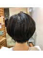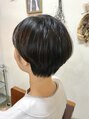 ダークなカラーでも重くなりすぎないように軽さとメリハリをつけています。サイドは耳にかけてもヤボったくならないようにコンパクトに仕上げています。