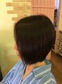 少しボリュームがでてしまう髪質を3ヶ月に一度の来店、襟足が上がってもヘアリセッターで生え癖をとりナチュラル艶ボブスタイルに毎回カットの持ちが良いのでリピートが多いスタイル。