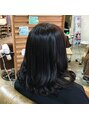 ブルーグレーのカラーでヘアスタイルに奥行きがでていつものカラーより艶やかになります。胸上レングスなので、どんな髪質の方でもチャレンジしやすいスタイルで、コテでのアレンジやアップなどもやりやすいですよー。