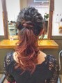 ルーズなポニーテールアレンジです(^^)レッド系のグラデーションカラーでより可愛く!!