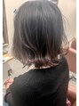 バッサリと15センチほどのカットで、伸びてきた根元のカラーを生かした切りっぱなしグラデーションカラースタイル*コテなどで毛先をやわらかくすることでふわっと自然体なスタイルが完成☆誰でも挑戦しやすいですよ*