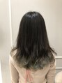 カーキアッシュのグラデーションカラーです。毛先のグラデーションカラーはブリーチしてあります。一回のブリーチだと、オレンジ味が強くでてしまうので、カーキアッシュとモノトーンカラーをミックスさせてあります。