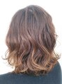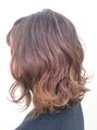 肩にかかるミディアムはすそがハネやすいのであえて、外ハネにコテで巻いてスタイリング。ウエーブにしてしまえば可愛いスタイルに。