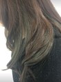髪に動きが出ると、内側のアッシュグレーが見えるようにカラーをいれてます。