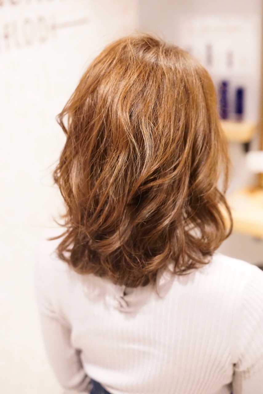 - トップのボリューム,前下がりボブ,長持ち,前髪流し,丸顔面長カバー,ハネにくい,セミロング,前髪が割れない