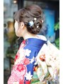 振袖の柄が華やかだったので雰囲気を合わせて上品なアップに。