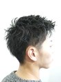 サイドはハサミで2ブロック、耳後ろから襟足まではツーブロックで繋げた風でしっかりと短くカット。全てをハサミで細かい部分も柔らかい質感に作り上げた洗練されたヘアスタイル♪