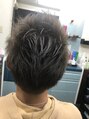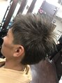 - サイド短めのツーブロに、ダブルカラーでアッシュ系のカラー。