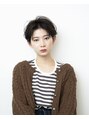 ラフなパーマのショートスタイルです。ボーイッシュに見えやすいセンターパートのショートは、ゆるいパーマで女性らしい印象に。ボーイッシュでもありフェミニンでもある二面性のあるスタイルです。