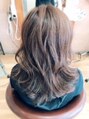 パーマは太目で根元まで巻きますアッシュとベージュのミックスですドライして終わり!が一番ですナチュラルスタイルご提案します
