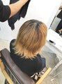 元々ブリーチをしている髪に、1度、根元から毛先にかけてグレージュで染めていきます。2度目に毛先(4分の1)に鮮やかなイエローで染めて完成です。インナーカラーに飽きた方へオススメの裾カラーです。※髪色が暗い方は1度全体的にブリーチをオススメします