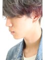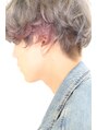 アッシュグレージュにアクセントカラーのピュア―バイオレットを加えてさらに中性的なメンズにアレンジ