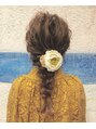 インパクトのある花飾りと洋服に合わせた編みおろしスタイル