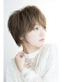 「クシュッ」と、無造作に自然に、毛束感が感じられるマッシュショートスタイル。自然な毛束感を感じられるようにベージュより少し濃いめのショコラ色で『隠れローライト』をところどころに散らしています。ショートヘアも女っぽく束感を遊べます。【銀座】