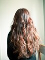 サイドパートで目にかかるアンニュイバングがポイントのウェーブロング。全体的に散りばめたハイライトで透明感と立体感を!耳かけスタイルにするのがオススメのスタイルです☆コテで巻いたようなゆるふわデジタルパーマで意外にもスタイルングは楽チン☆