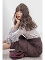猫っ毛の方にオススメの柔らかいカラーのスタイルです。毛先はワンレングスベースで揃えてカットをしてあります。重くなりすぎないよに適度にボリュームコントロールをするのと、毛先を崩して間引くようにカットしてあるので、巻いた時に可愛く仕上がります。
