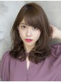 面長さんは前髪が大切!チラッと「おでこ」を見せた「おろし流し前髪」◎目尻から顎ラインに毛流れをデザインしてサイドに動きが◎小顔になります!カールは強すぎないでナチュラルがポイントです。「The C by afloat」は必ず小顔に導きます!!