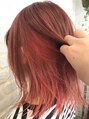 インナーカラーが存在感のある切りっぱなしボブの可愛いスタイルです! 同型のレッド系のカラーでインナーカラーがビビットなアクセントがさりげなくポイント!