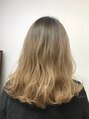 流行の切りっぱなしで表面に全体にハイライトを入れ外国人風のラフなウェーブなスタイルに・・・☆*・。