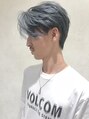 前が明度が明るいブルーアッシュで、後ろにいくにつれ明度が暗いブルーアッシュにして、前下りカットに合わせたカラーが絶妙な抜け感でオススメヘアーです!
