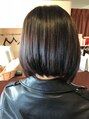 大人かっこいい女性像にぴったりなボブスタイル後頭部の自然な奥行きある丸みと前下がりのラインは女性らしく短くされたい方におススメです