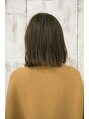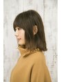 鎖骨ラインのワンレングスを切りっぱなし風に毛先を返してカット。前髪は透け感を出しながら目の下でカット