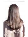顔周りレイヤーの入ったAラインのスタイルです。全体に濃いめのグレージュのローライトが入っているので立体感があります。