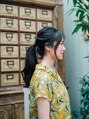 さらっと簡単アレンジスタイル☆ ねじりくるりんぱをしたゆるめポニーテールで大人アレンジヘア☆ 自分でも簡単にできちゃう☆5分アレンジスタイルです☆ オフィスワーク・お出かけ・デート・様々なシーンでも使えるアレンジです☆【大島】