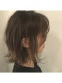 耳にかけて巻いてショート風のボブ。カラーも柔らかいベージュで優しく。
