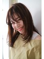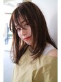 軽さのあるレイヤーミディ。顔周りにたっぷりとレイヤーを入れることでストレートタッチのスタイルでも軽やかさが手に入る。カラーは黄味を打ち消すラベンダーを混ぜたラベンダーベージュ。伸ばしかけの前髪はアイロンでふんわりと巻いて横に流して。
