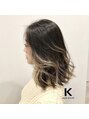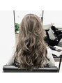 ベースをブリーチでブランドにします!その後、グレーとバイオレットのブランドでグレージュカラーが完成します。