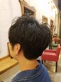 人気のメンズ重めスタイル!!ネープをすっきりさせることで、トップのボリューム感をプラス。直毛のお客様にはトップにクセ毛風のカールがおすすめです!!膨らむサイドには、シザー、バリカンではなくレザーカットの削ぎを使用。