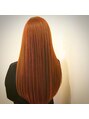サラサラストレートが特徴的ななロングスタイル。カラーは秋冬トレンドスタイルでオレンジベースのベージュブラウンです♪毛先は重ためにCUTしてあります。