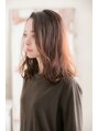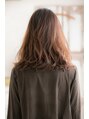 鎖骨ラインのワンレングス表面にレイヤーを入れてことでニュアンスある動きを実現。平巻きでパーマを。カラーはスモーキーピンク。