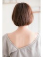 重めのシルエットで唇ラインのボブ。前髪は透け感シースルー。カラーは、コットンピンク
