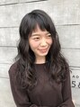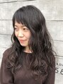 お顔のバランスに合わせてカール感を調整したコスメパーマ。オン眉前髪でも斜めバングにすれば幼くなりすぎません。黒髪・暗髪でもカワイイパーマスタイル、オススメです!