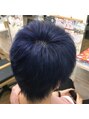個性的な濃いめネイビーブルーをいれるために、まずは限界までブリーチをします。綺麗に脱色したら、追加のカラーで濃厚のネイビーブルーをかぶせてオッケーです。