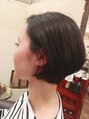 お客様スタイル大人っぽさのある前髪長めのショートボブスタイルです色は赤味を抑えたブルーベージュで♪