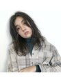 色濃く透けるオリーブグレージュ。しっかり濃いめのカラーでも透明感が出せるカラーです。カットはトップだけにレイヤーを入れてラフな巻き髪も決まりやすい軽さを出しています。毛先や顔まわりにも動きと軽さを。