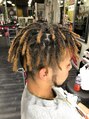 全体に特殊パーマをあててからの海外風地毛ドレッドスタイルです。毛先はカラーでグラデーションになっています。下は刈り上げてドレッドスタイルのなかでもサッパリして過ごしやすいスタイルです。