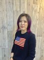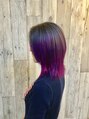 - ダブルカラーで ダークグレーにした後、毛先をブリーチして、パープルを重ねてあります。