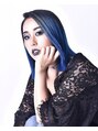 根元は黒で残し毛先のみブリーチ。その後ブルーをオン。ブルーはブリーチで色が抜けている事が条件のため抜けが悪い方には、ターコイズブルーやエメラルドグリーンもオススメです。毛先をぶつ切りにし、よりシャープでクールにシルエットを作っています。