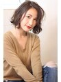 かき上げのバングでアゴ下ラインボブスタイル。レイヤーはトップのみに入れ、毛先はややボリュームを残す。全体に縦巻きでデジパーをかけてラフに崩して大人っぽさとセクシーさを。