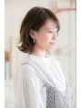 肩上の前上がりローレイヤーに逆巻きのパーマをかけ、毛先の跳ね感と軽さを強調。マロンアッシュでかわいらしいカラーを。